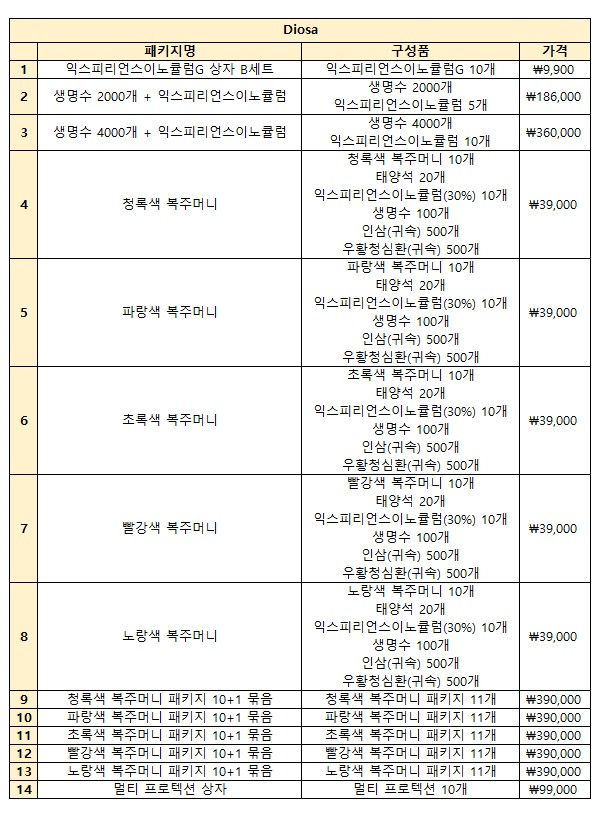 ※ 생명수 2000개 + 익스피리언스이노큘럼, 생명수 4000개 + 익스피리언스이노큘럼 패키지가 판매됨에 따라 생명수 2000개, 생명수 4000개 상자 판매가 종료됩니다.