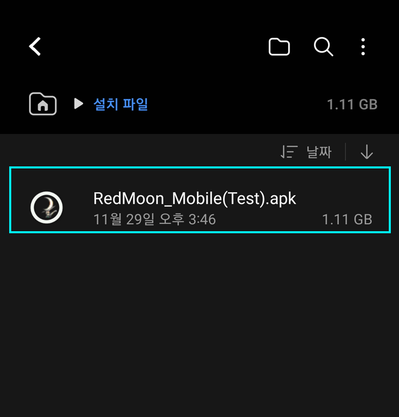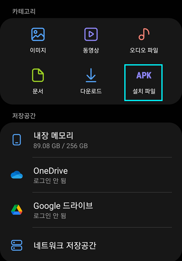 1. 파일 다운로드 후, Mobile 기기내 [내 파일] 클릭 후 [APK 설치 파일] 클릭