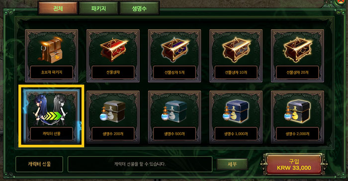 ※ 캐릭터 선물하기 캐시샵 추가