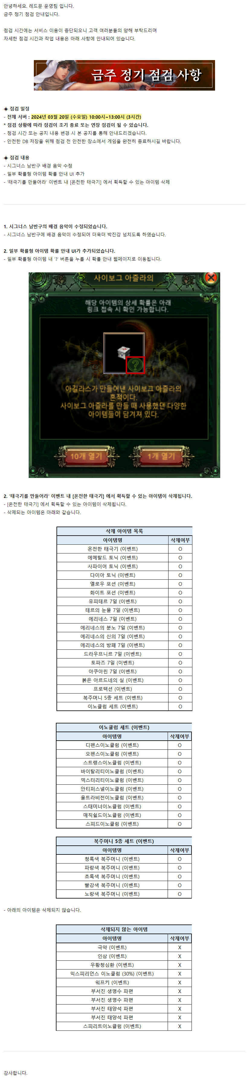 [레드문 온라인] 03월 20일 (수) 레드문 온라인 점검 공지 안내 드립니다. 페이지 정보 작성자 REDGAMES 작성일02-27 조회29회 댓글0건 관련링크 이전글 다음글 답변 글쓰기 목록 본문 이전글 다음글 답변 글쓰기 목록