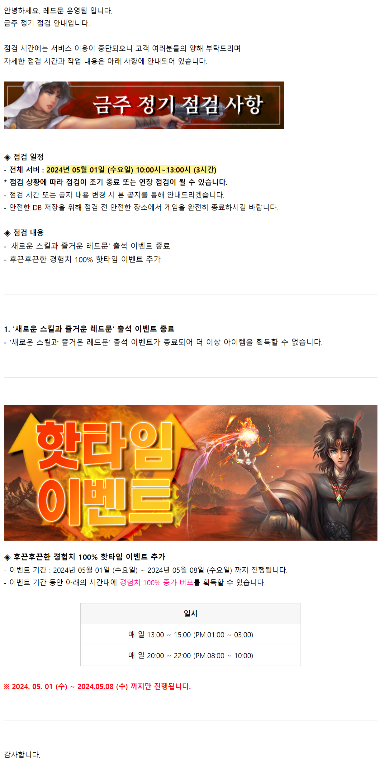 [레드문 온라인] 05월 01일 (수) 정기 점검 안내 드립니다. 페이지 정보 작성자 REDGAMES 작성일02-27 조회30회 댓글0건 관련링크 이전글 다음글 답변 글쓰기 목록 본문 이전글 다음글 답변 글쓰기 목록